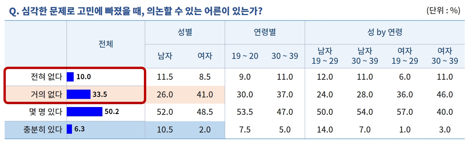 โ20-30๋ ์ฌ์ฑ๋ค์ ์ฃผ๋ณ์ ๋ฉํ ๊ฐ ๋ ๋งํ ์ฌ์ฑ์ด ์๋ค๋ ๋ง์ ์์ฃผ ํ๋ค. ๊ณผ๊ฑฐ์๋ ์ฌ์ฑ์ด ์ ๋ฆฌ์ฒ์ฅ์ ๋ซ๊ณ ๋๊ธฐ์